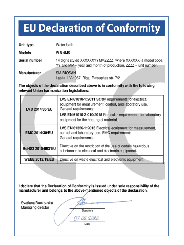 Get the free Unit type Water bath Models WB-4MS Serial number 14 ...