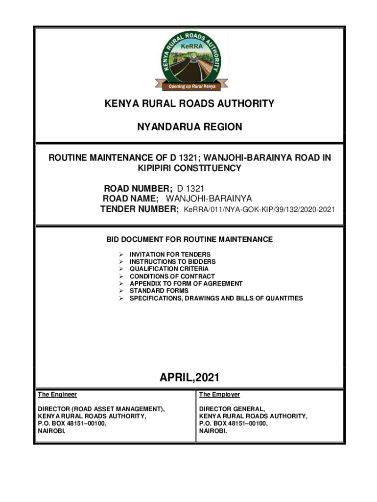 TENDER NUMBER; Kerry/011/NYAGOKKIP/39/132/20202021BID
