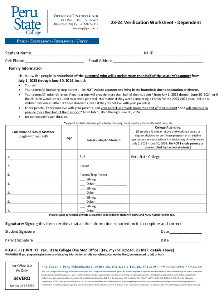 2324 Verification Worksheet DependentStudent Name ___ QUID ___