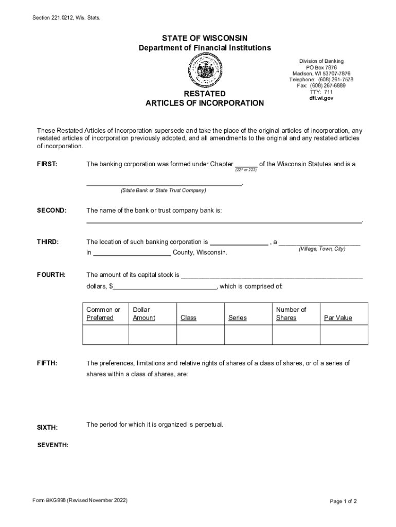 Articles Of Incorporation Restated is not the form you're looking for?Search for another form here.