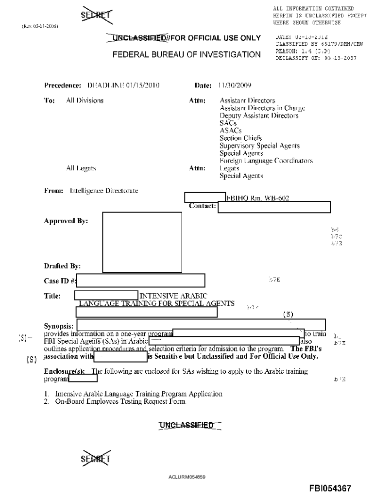 Rev05012008IIIIIUS8IEIEjIFOR OFFICIAL USE CONFEDERAL BUREAUDEADLINEPrecedenceToAllOF INVESTIGATIONDate01/15/2010AttnDivisions11/30/2009Assistant Directors Assistant DirectorsinChargeAssistant DirectorsDeputySACsASACs