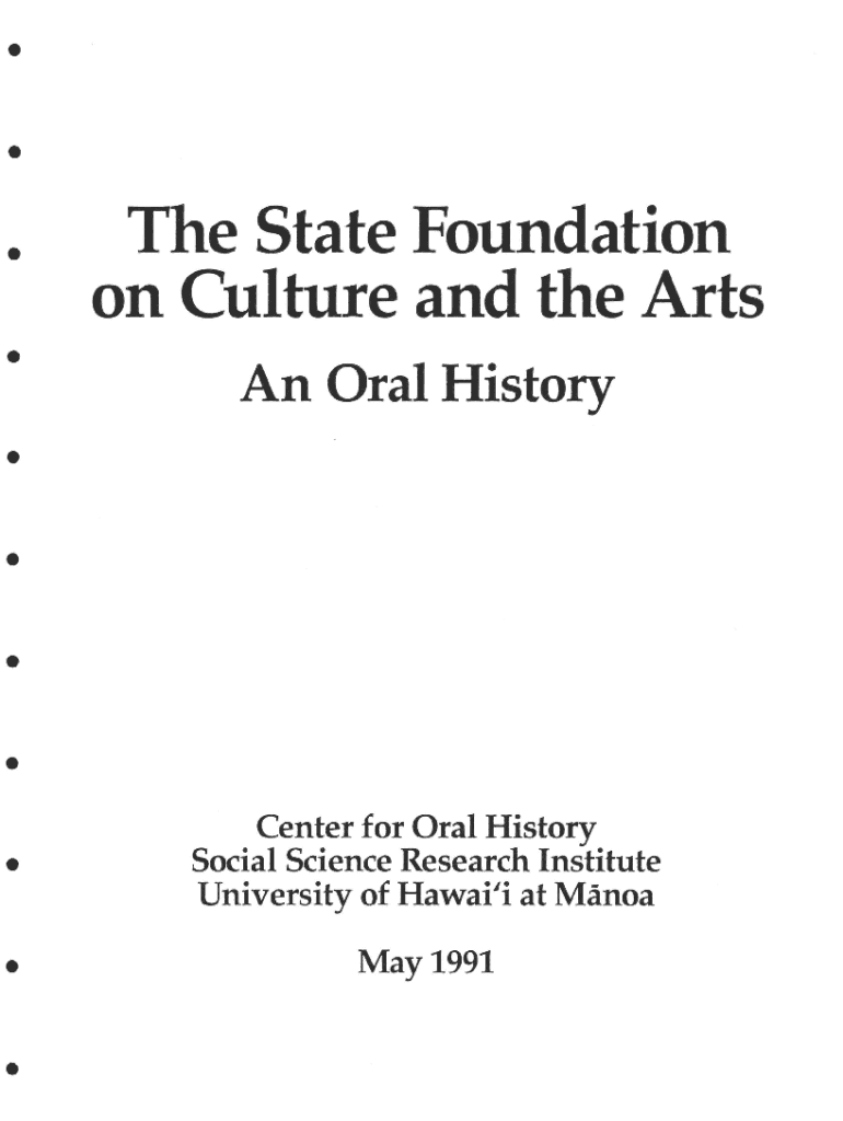 The State Foundation on Culture and the Arts An Oral History Center for Oral History Social Science Research Institute University of Hawaii\'i at ManoaMay1991 Copyright 1991 Center for Oral History