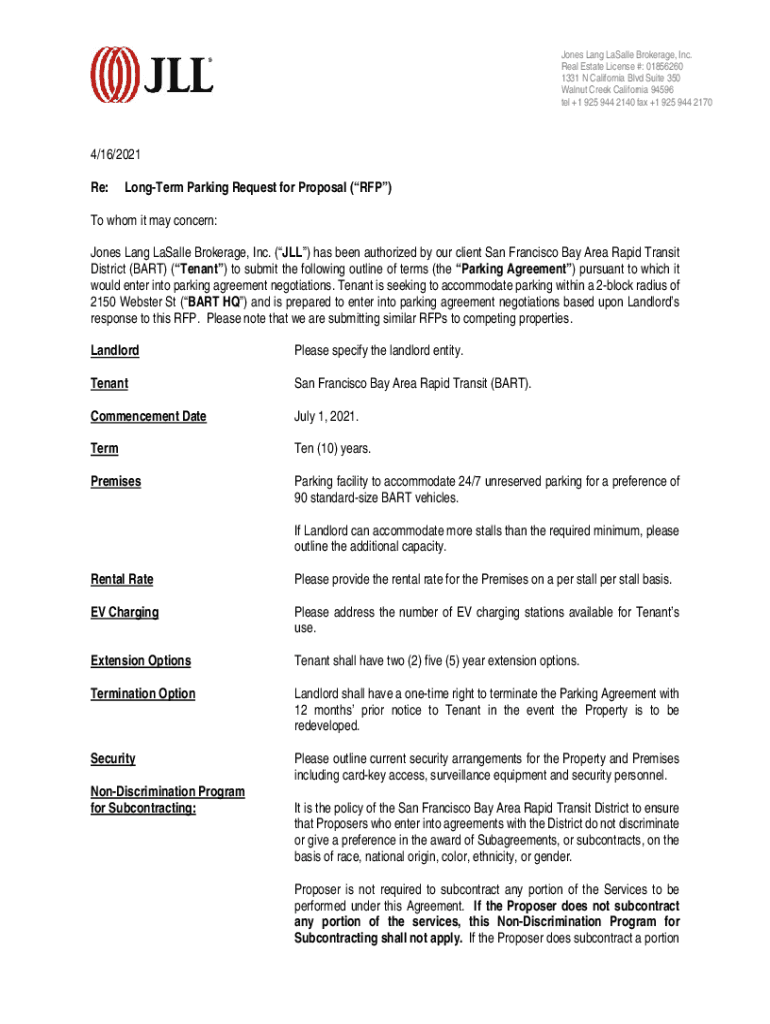 Jones Lang Basally Brokerage, Inc. Real Estate License #: 01856260 1331 N California Blvd Suite 350 Walnut Creek California 94596 tel +1 925 944 2140 fax +1 925 944 21704/16/2021 Re:Longer Parking