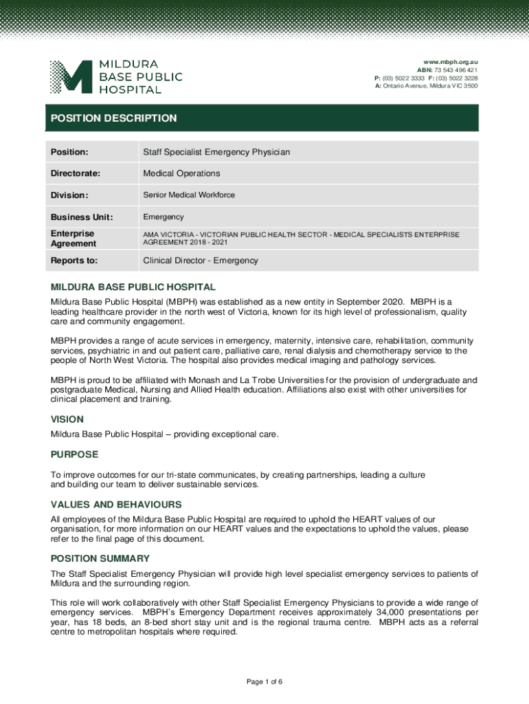 A: Ontario Avenue, Mildura VIC 3500POSITION DESCRIPTION