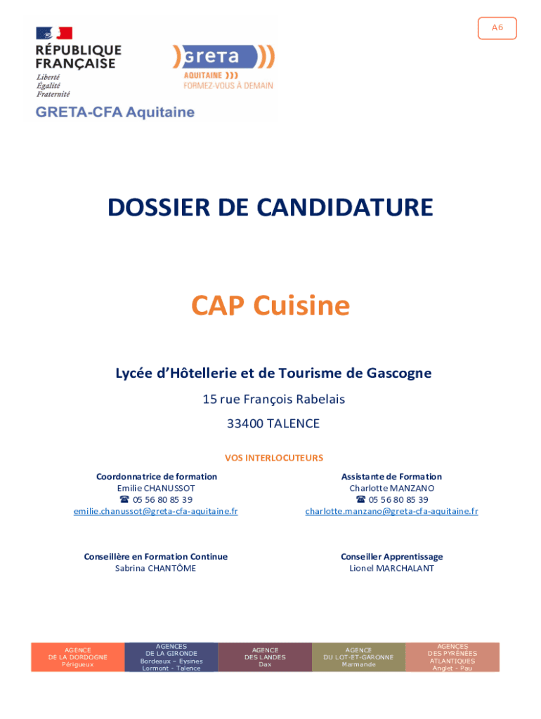 A6DOSSIER DE CANDIDATURE CAP Cuisine