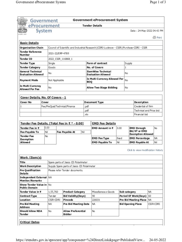 Get the free Technical and Price bid - cdri res