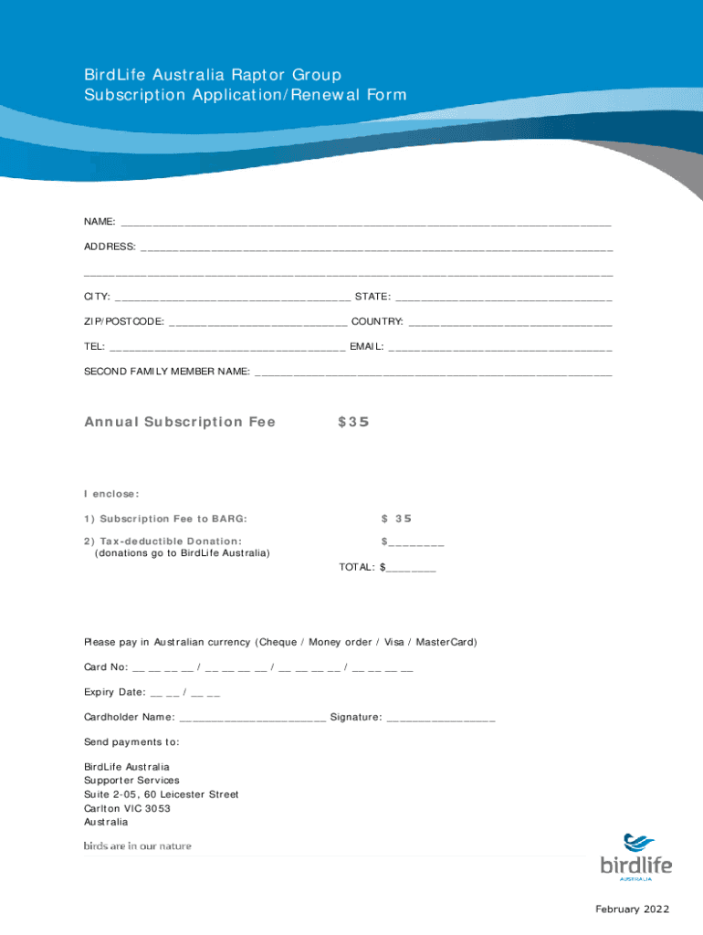 Get the free BirdLife Australia Raptor Group Subscription Application/ ...