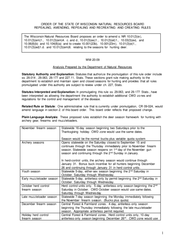 ORDER OF THE STATE OF WISCONSIN NATURAL RESOURCES BOARD REPEALING, AMENDING, REPEALING AND RECREATING AND CREATING RULES The Wisconsin Natural Resources Board proposes an order to amend s. NR 10.01(3)(e),