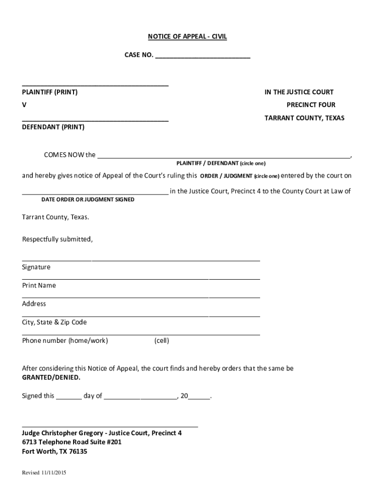 Get the free notice of appeal - civil