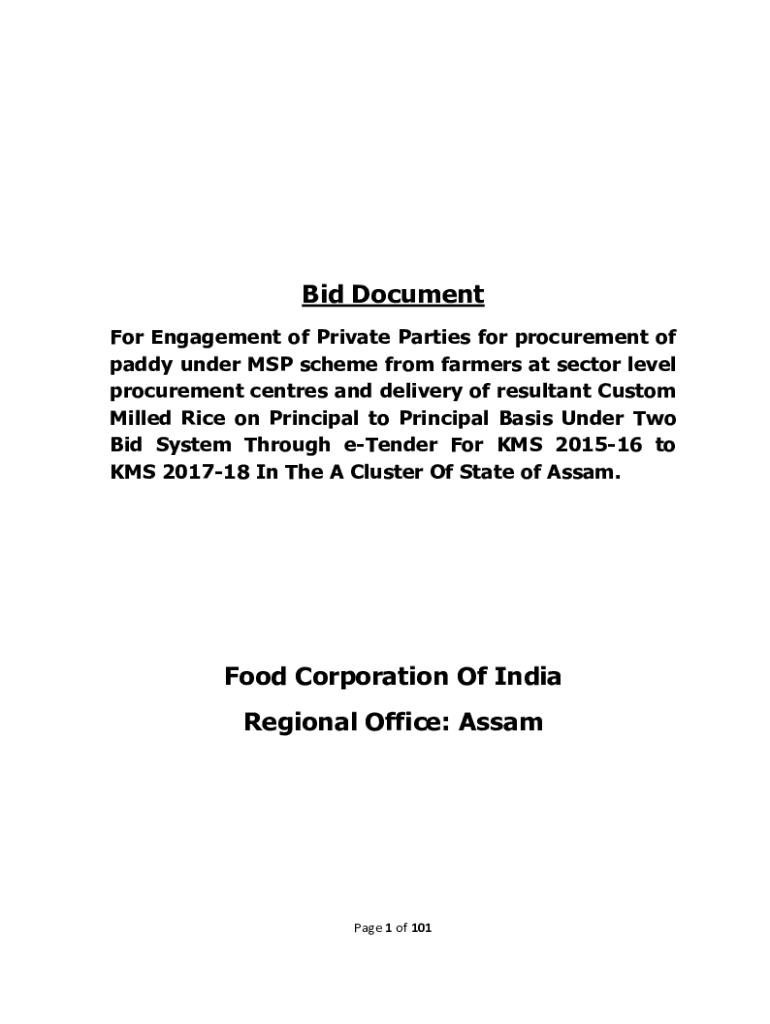 Bid Document Engagement of Private Parties for procurement of paddy under MAP scheme from farmers at sector level procurement centers and delivery of resultant Custom Milled Rice on Principal to Principal