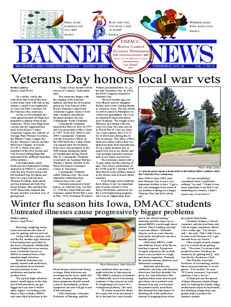 Final example long will schedule for you wear a pair of fall 2007of jeans?page 3page 4Des MINES AREA COMMUNITY COLLEGEBOONE CAMPUSWineries make Iowa taste good. Page 6wednesday, Nov. 21Vol. 7, No.