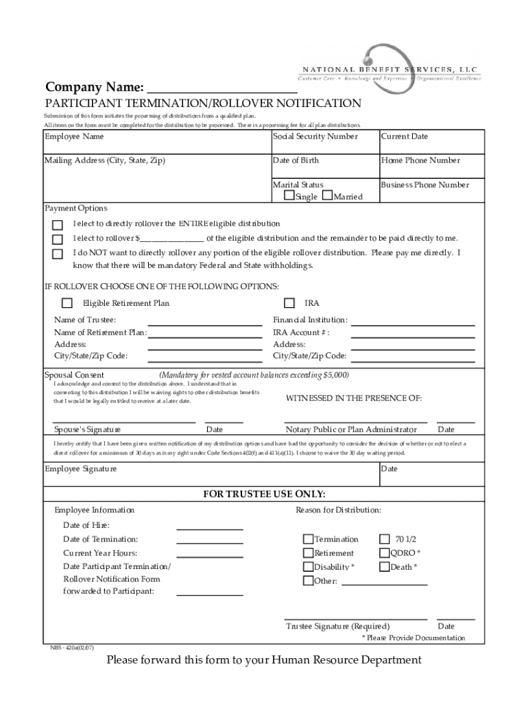 PARTICIPANTTERMINATION/ROLLOVERNOTIFICATION