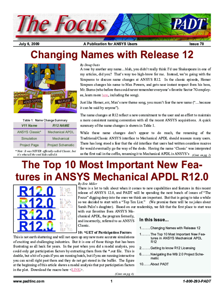 July 6, 2009The FocusIssue 70July 6, 2009A Publication for ANSIs UsersIssue 70Changing Names with Release 12 By Doug Otis rose by another any name blah, you didn't really think I'd use Shakespeare