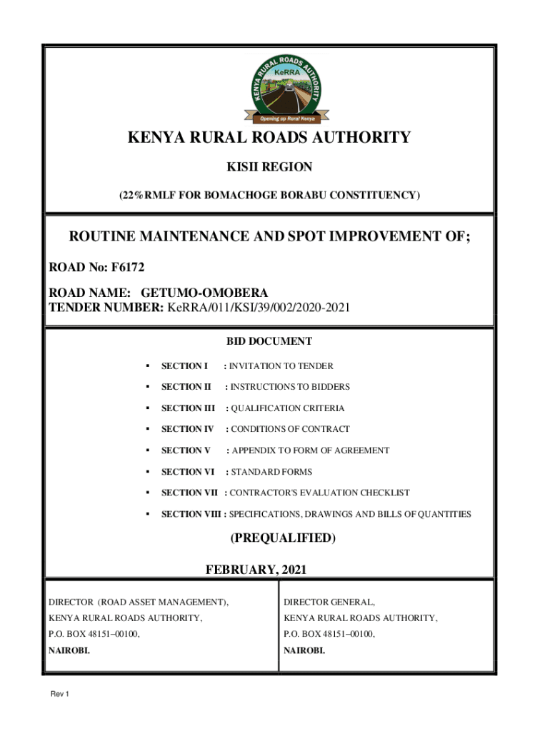 TENDER NUMBER: Kerry/011/CSI/39/002/20202021