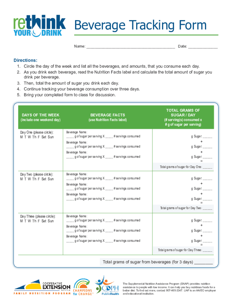 Anyone looking to track and monitor their beverage consumption or make healthier drink choices can benefit from using the Rethink Your Drink Complete form.