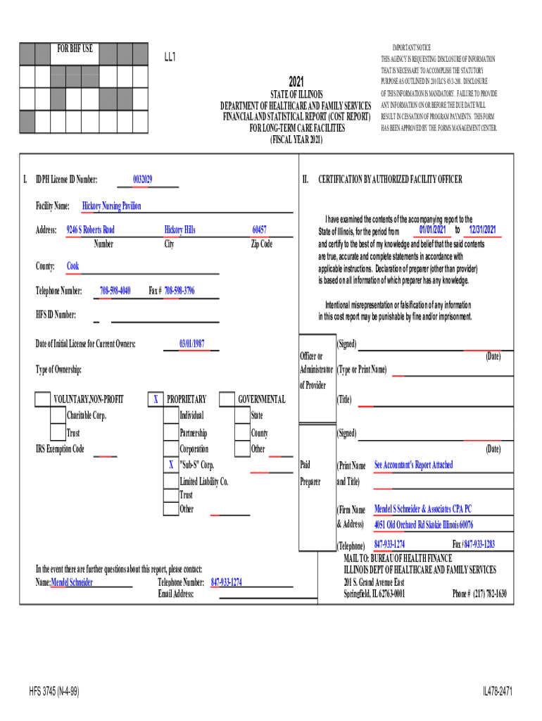 FINANCIAL AND STATISTICAL REPORT (COST REPORT)