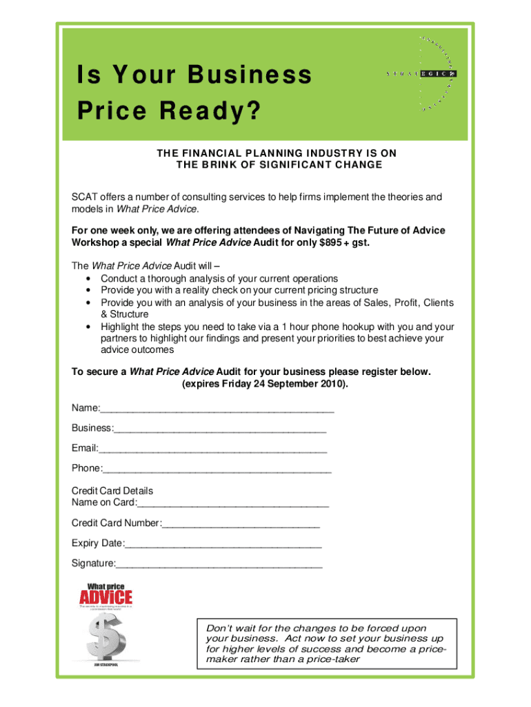 Is Your Business Price Ready? THE FINANCIAL PLANNING INDUSTRY IS ON THE BRINK OF SIGNIFICANT CHANGE SCAT offers a number of consulting services to help firms implement the theories and models in What