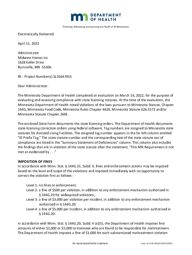 TheMinnesotaDepartmentofHealthcompletedanevaluationonMarch16,2022,forthepurposeof