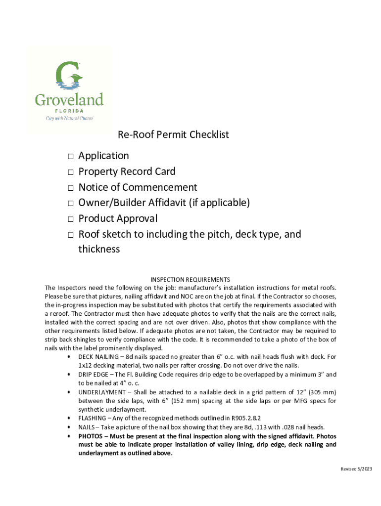 Get the free Re-Roof Permit Checklist Application Property Record Card Notice ...