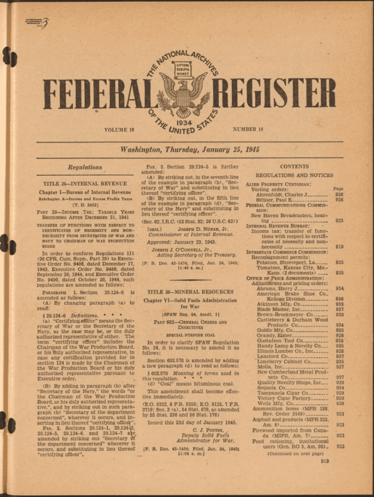 UTTER SCRIPTAREGSTERFEDERAL 934 ^ M h t e d VOLUME 10NUMBER 18Washington, Thursday, January 25, 1945, R EU nation s TITLE 26INTERNAL REVENUE Chapter Bureau of Internal Revenue Subchapter Income and