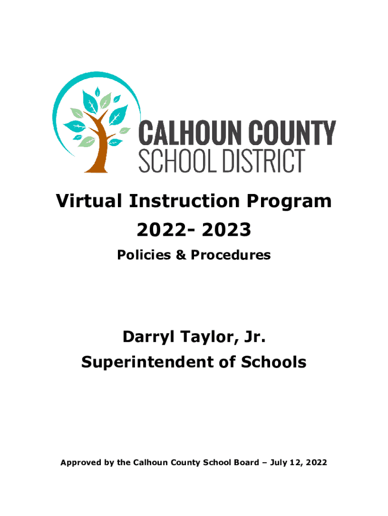 Virtual Instruction Program 2022 2023 Policies & Procedures Darryl Taylor, Jr. Superintendent of SchoolsApproved by the Calhoun County School Board July 12, 2022No person shall, on the basis of race,