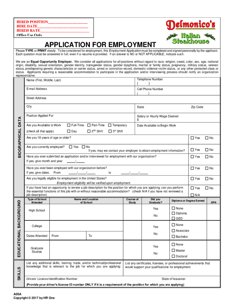 HIRED POSITION___ HIRE DATE___ HIRED RATE___ Office Use Only236APPLICATION FOR EMPLOYMENT Please TYPE or PRINT clearly. To be considered for employment, this Employment Application must be completed