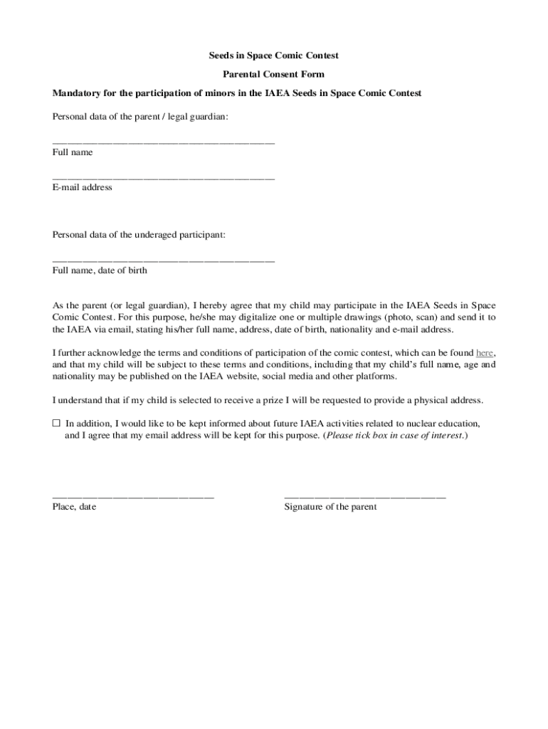 Get the free Seeds in Space Comic Contest Parental Consent Form
