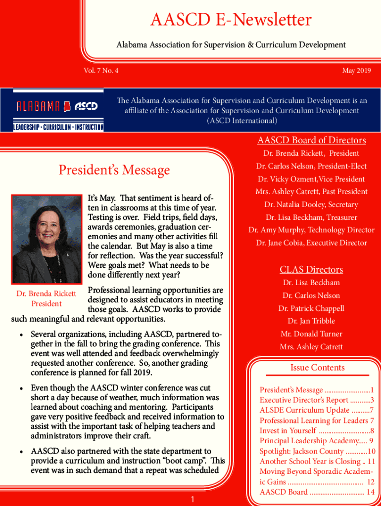 Vol. 7 No. 4May 2019The Alabama Association for Supervision and Curriculum Development is an