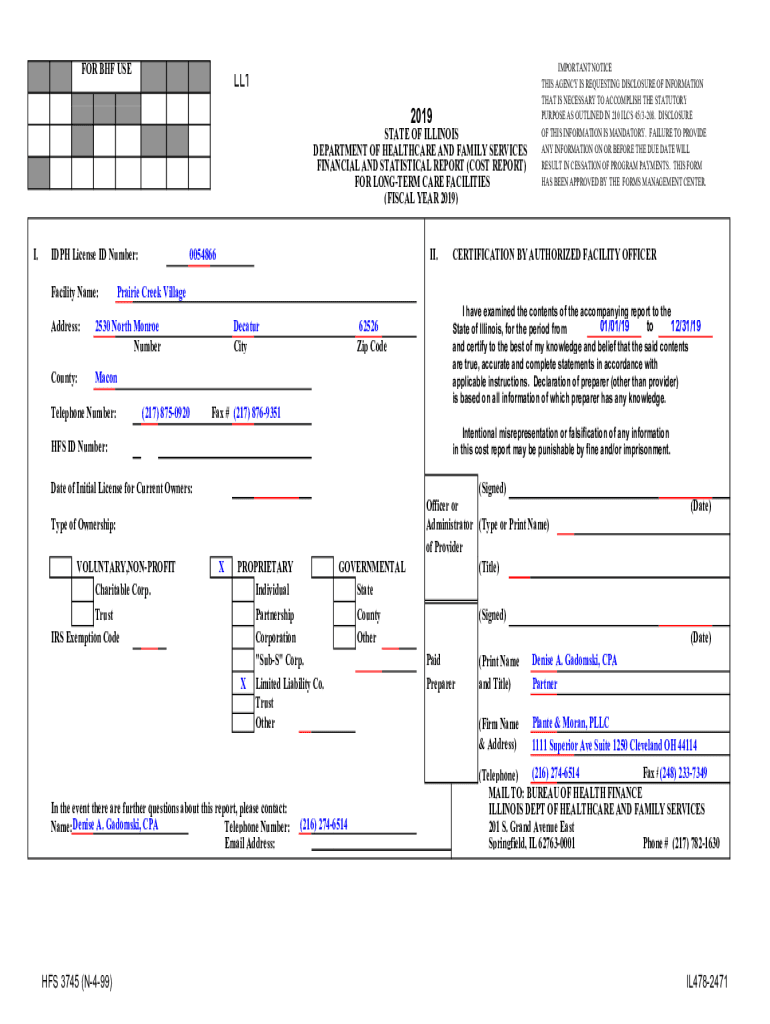 FINANCIAL AND STATISTICAL REPORT (COST REPORT)