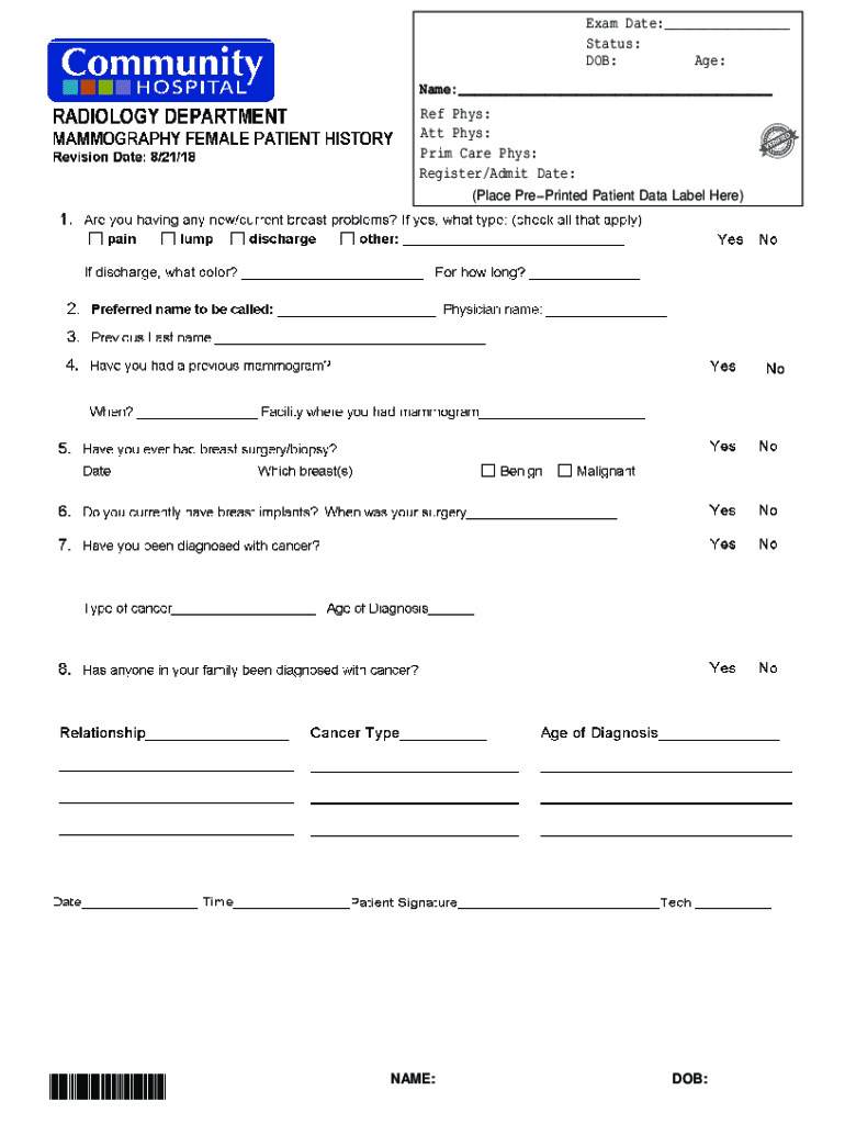 Exam Date:___ Status: DOB: Age: Name:___ Ref Phys: ATT Phys: Prim Care Phys: Register/Admit Date: (Place PrePrinted Patient Data Label Here)r×MEMPHIS×name:DOB: