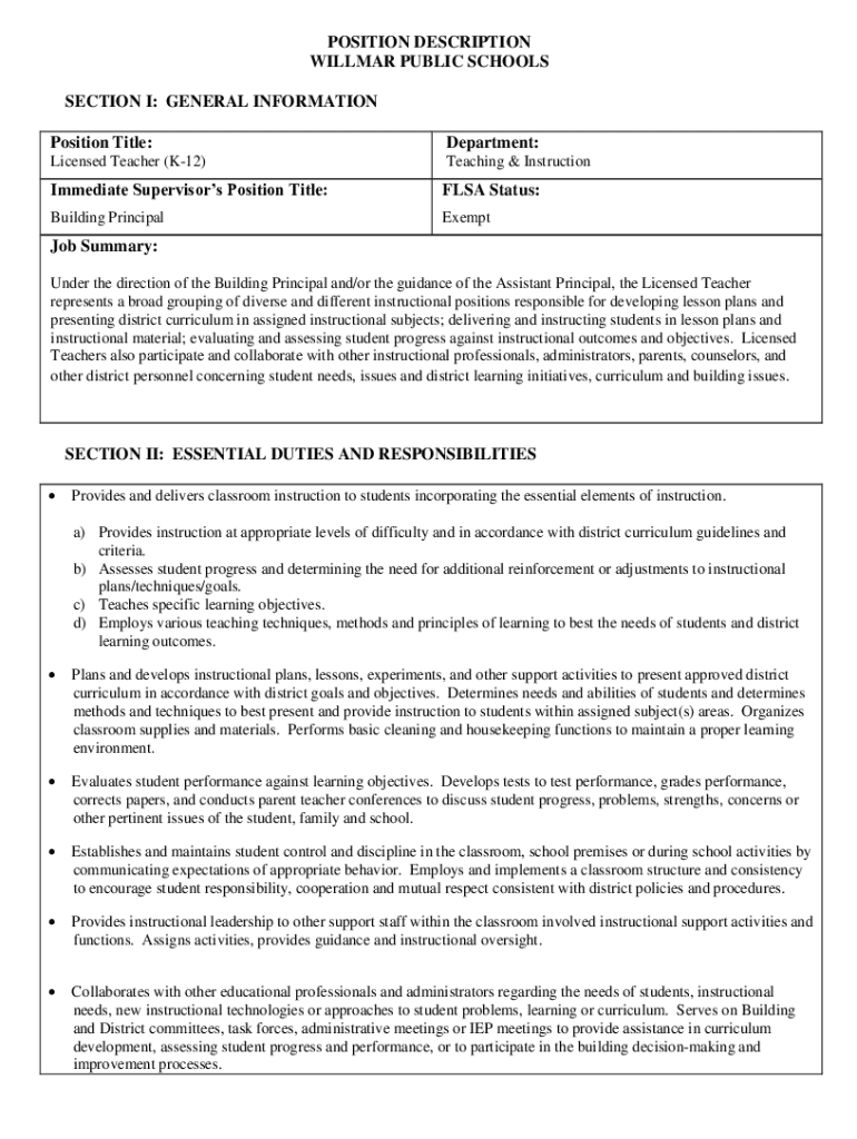 Position Title:Department:Licensed Teacher (K12)Teaching & InstructionImmediate Supervisors Position Title:FLEA Status:Building
