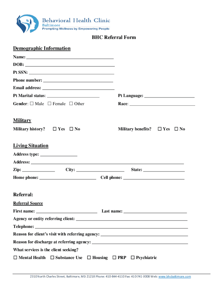 Get the free BHC Referral Form Demographic Information Military ...