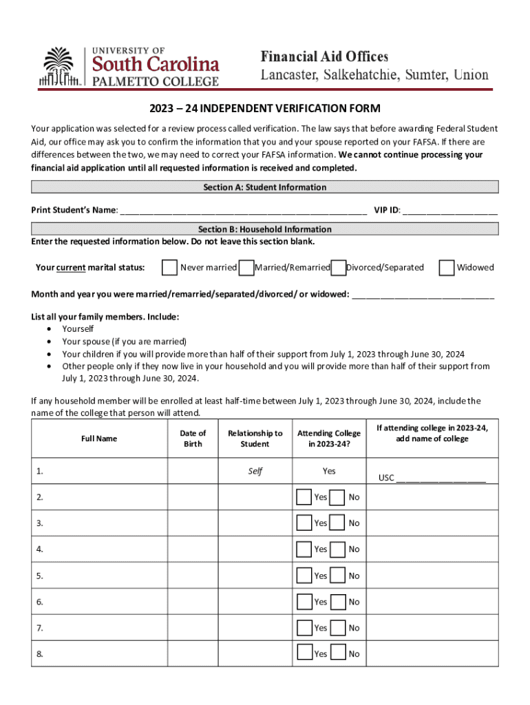 2023 24 INDEPENDENT VERIFICATION From Your application was selected for a review process called verification. The law says that before awarding Federal Student Aid, our office may ask you to confirm
