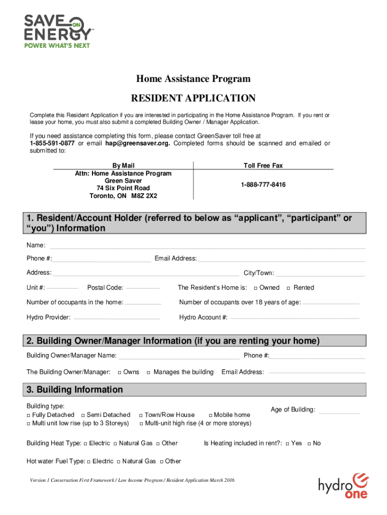 Home Assistance Program RESIDENT APPLICATION Complete this Resident Application if you are interested in participating in the Home Assistance Program. If you rent or lease your home, you must also