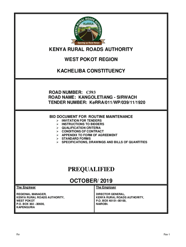 TENDER NUMBER: Kerry/011/WP/039/11/1920