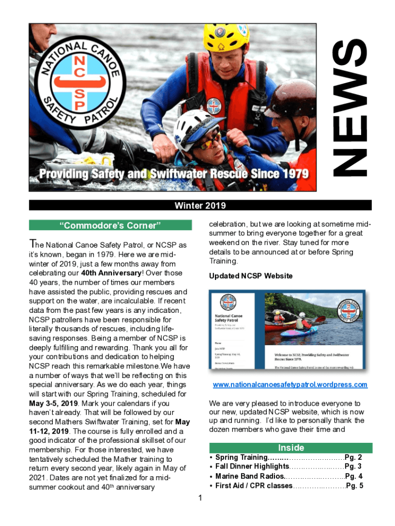 NEWS Winter 2019 celebration, but we are looking at some time midsummer to bring everyone together for a great weekend on the river. Stay tuned for more details to be announced at or before Spring