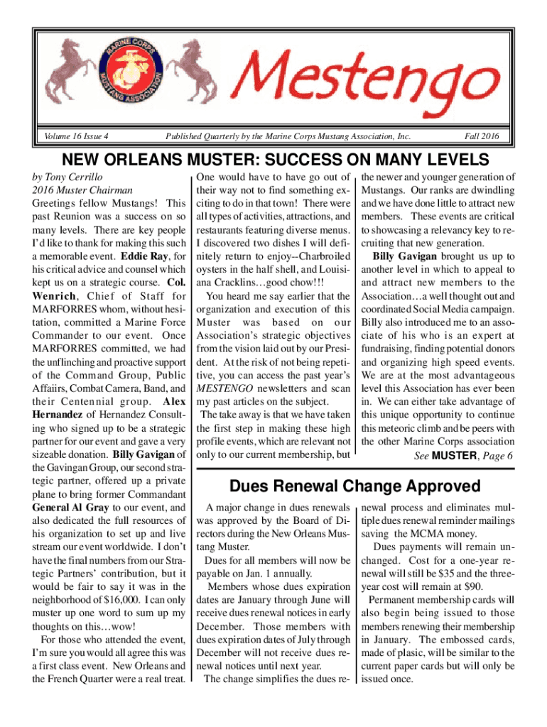 Volume 16 Issue 4Published Quarterly by the Marine Corps Mustang Association, Inc. Fall 2016NEW ORLEANS MUSTER: SUCCESS ON MANY LEVELS