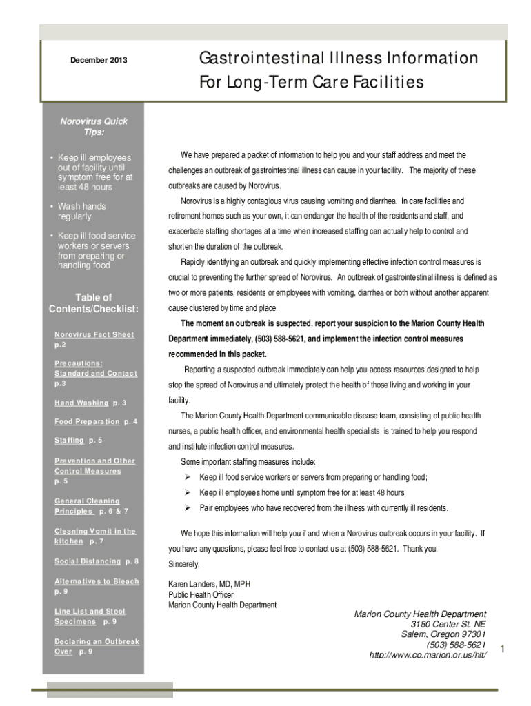 Gastrointestinal Illness Information for Longer Care FacilitiesGastrointestinal Illness Information For Longer Care Facilities December 2013Norovirus Quick Tips: Keep ill employees out of facility