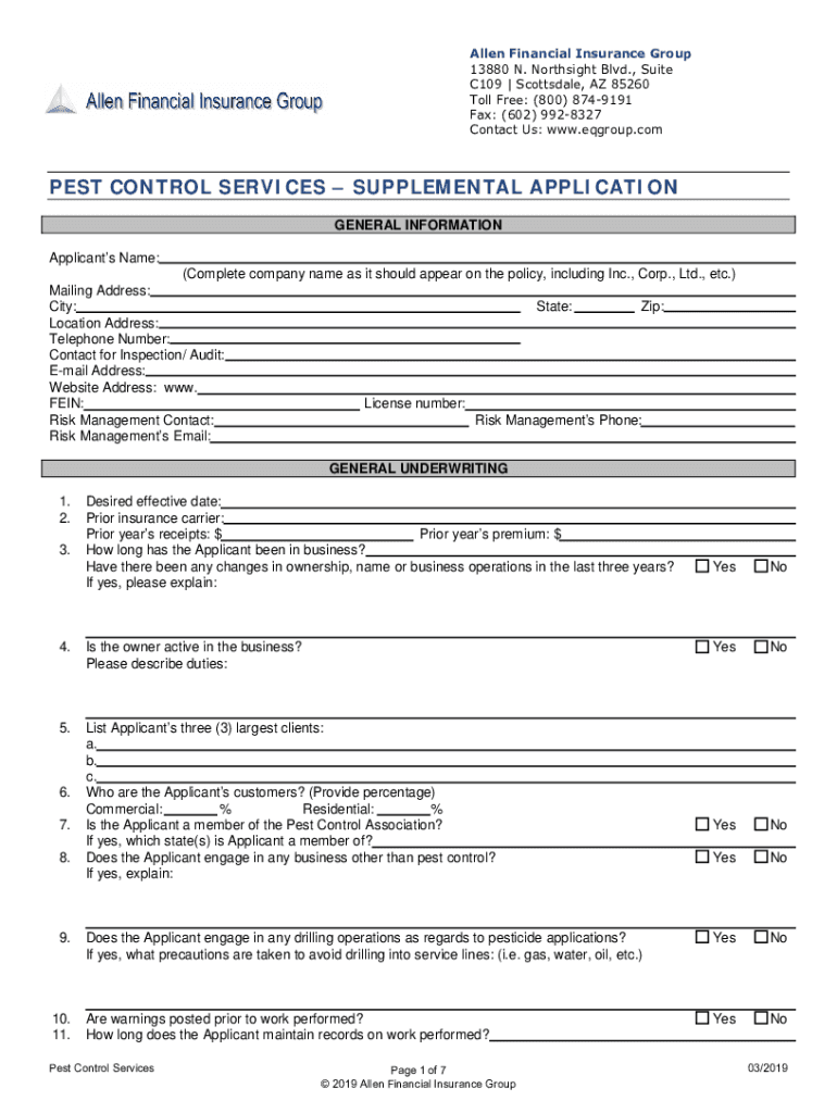 Print ApplicationClear Application Allen Financial Insurance Group 13880 N. North sight Blvd., Suite C109 | Scottsdale, AZ 85260 Toll Free: (800) 8749191 Fax: (602) 9928327 Contact Us: www.eqgroup.comPEST