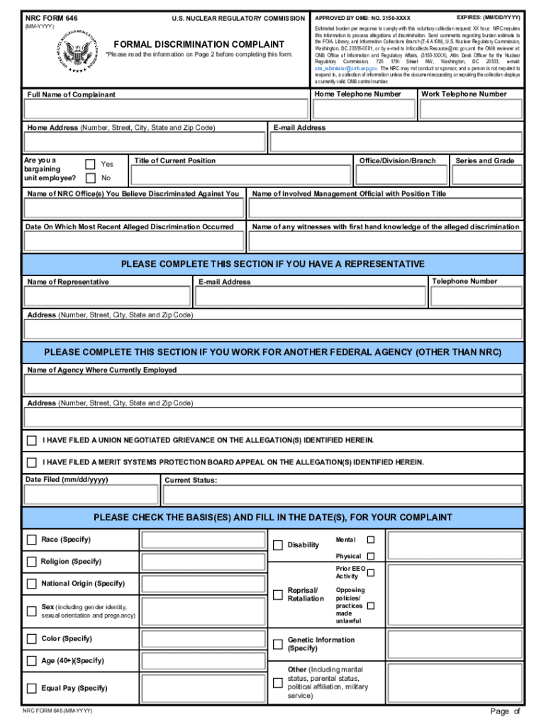 Get the free NRC Form 646, "Formal Discrimination Complaint" (for OMB submission)