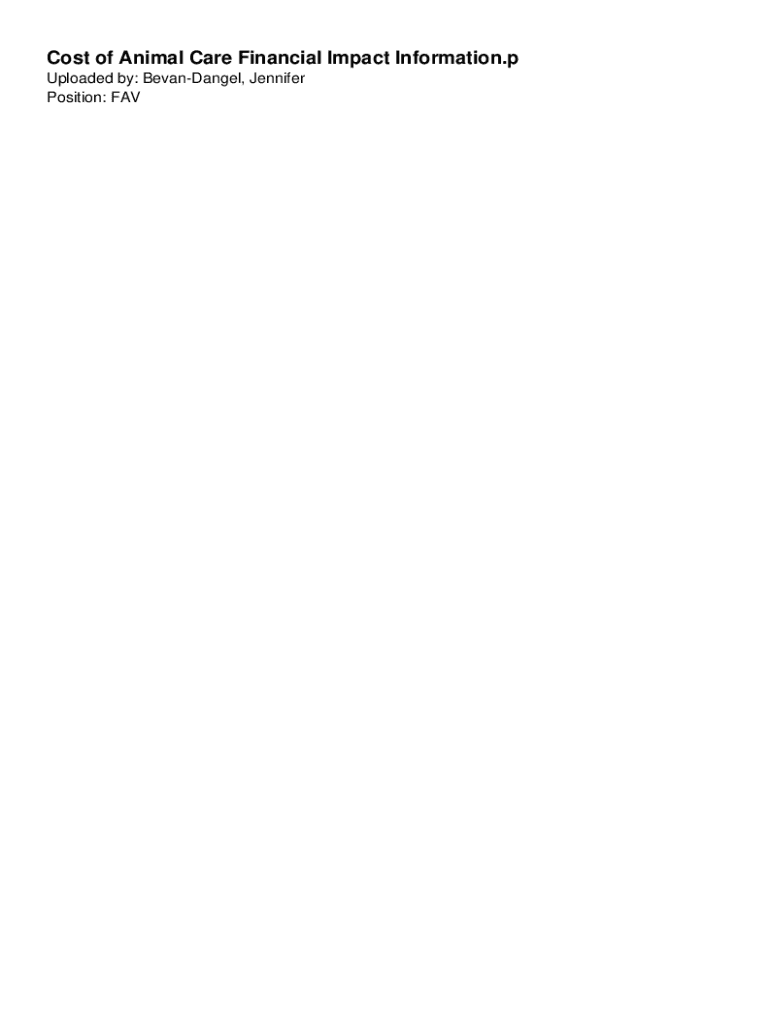 Cost of Animal Care Financial Impact Information.p Uploaded by: BevanDangel, Jennifer Position: Fascist of Animal Care: Case Studies of Financial Impact Cost of animal care legislation is smart, reasonable