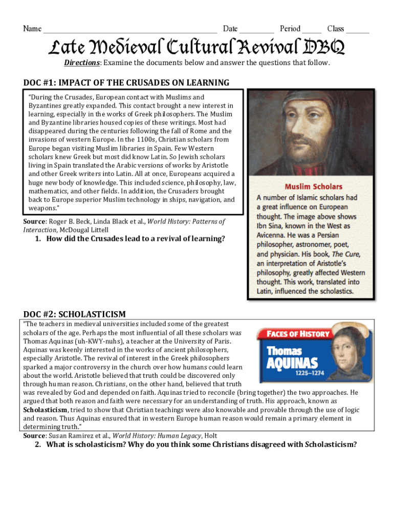 Name ___ Date ___ Period ___ Class ___Late Medieval Cultural Revival DBQ