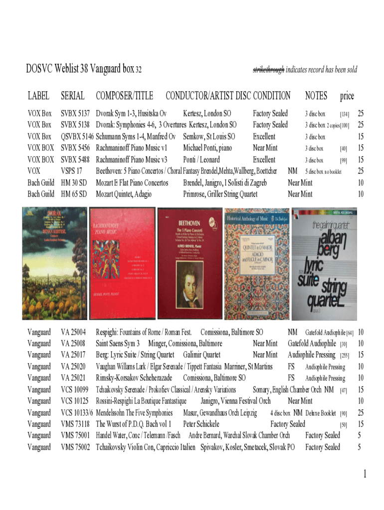 DO SVC Web list 38 Vanguard box 32strikethrough indicates record has been soldLABELSERIALCOMPOSER/TITLECONDUCTOR/ARTIST DISC CONDITIONNOTESpriceVOX Box VOX