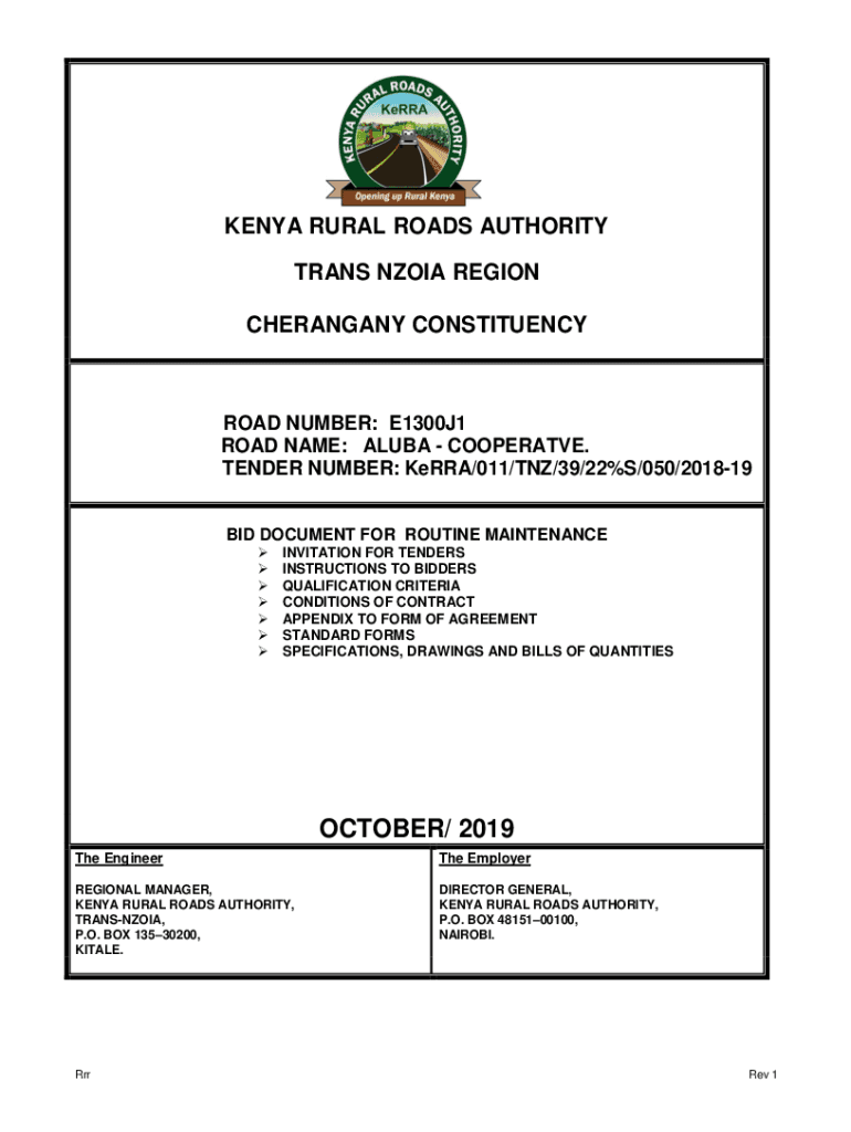 TENDER NUMBER: Kerry/011/TNA/39/22%S/050/201819