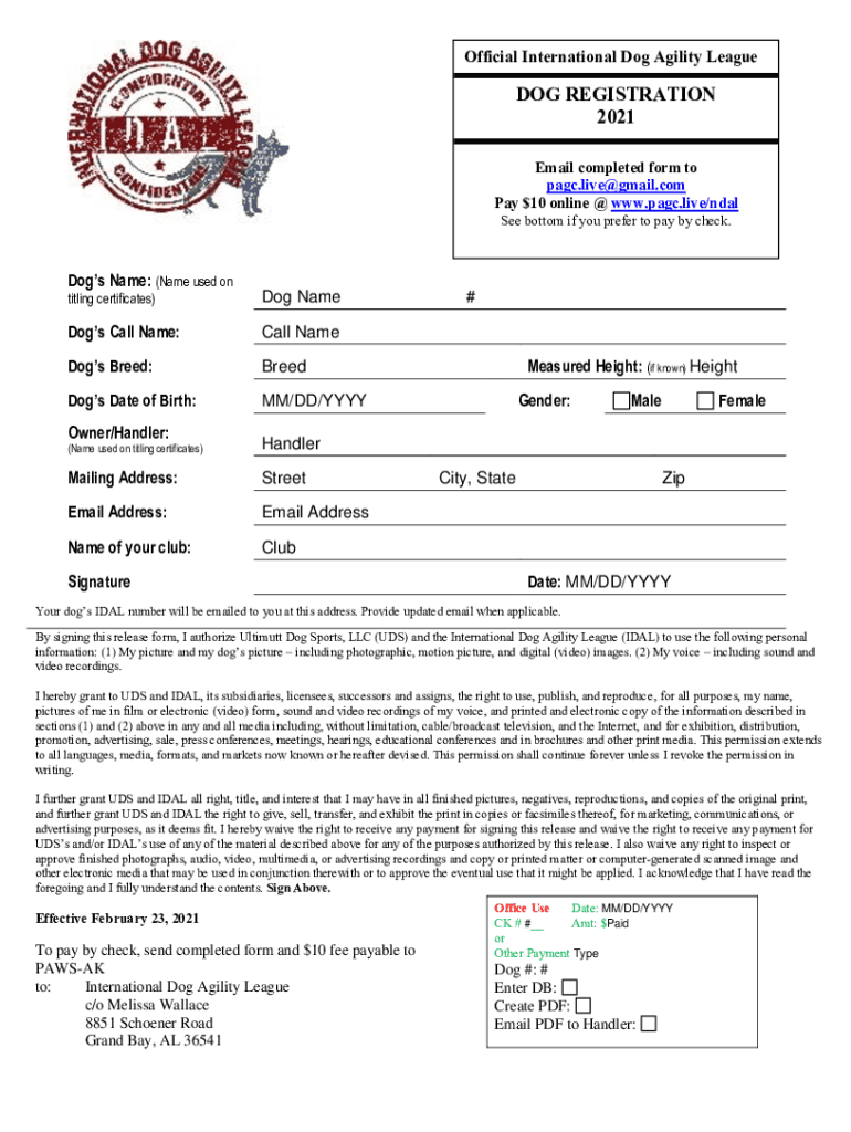 International Dog Agility Leaguewho is not the form you're looking for?Search for another form here.