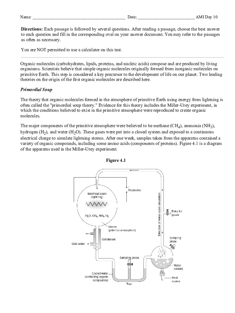 Name: ___ Date; ___ AMI Day 10Directions: Each passage is followed by several questions. After reading a passage, choose the best answer to each question and fill in the corresponding oval on your