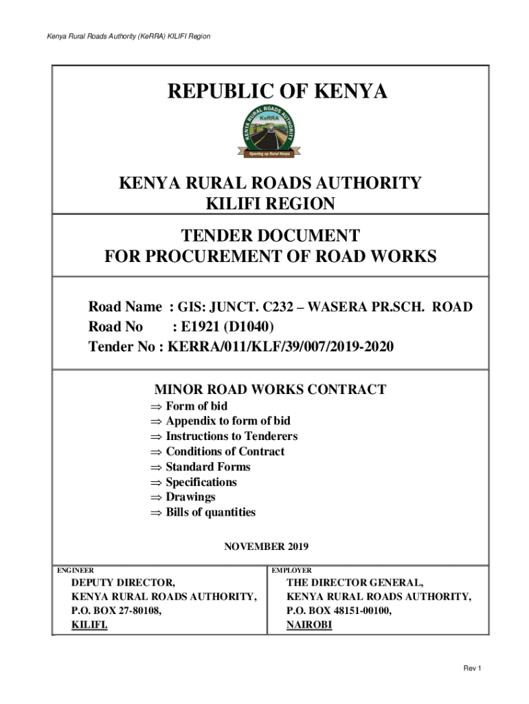 Kenya Rural Roads Authority (Kerry) VILIFY RegionREPUBLIC OF KENYAKENYA RURAL ROADS AUTHORITY