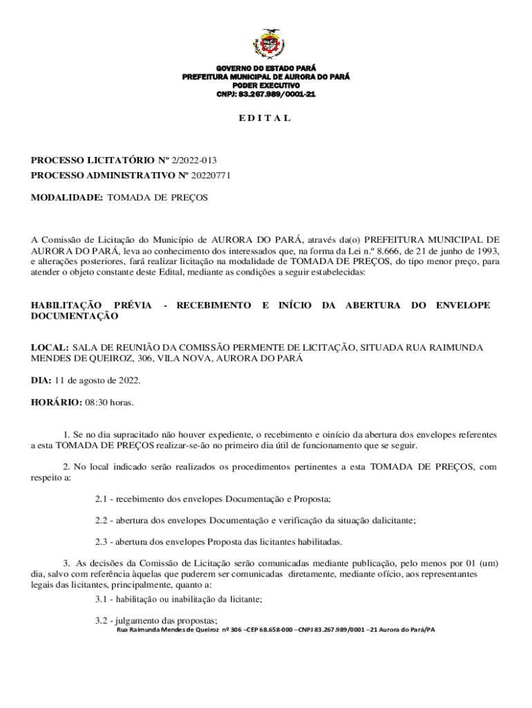 Obtenha o gratuito E D I T A L PROCESSO LICITATRIO N 2/2022-013 ...