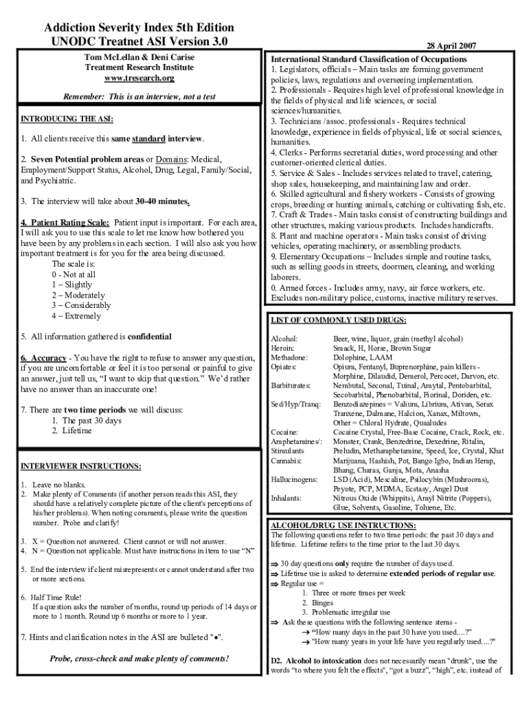 Get the free The Fifth Edition of the Addiction Severity Index