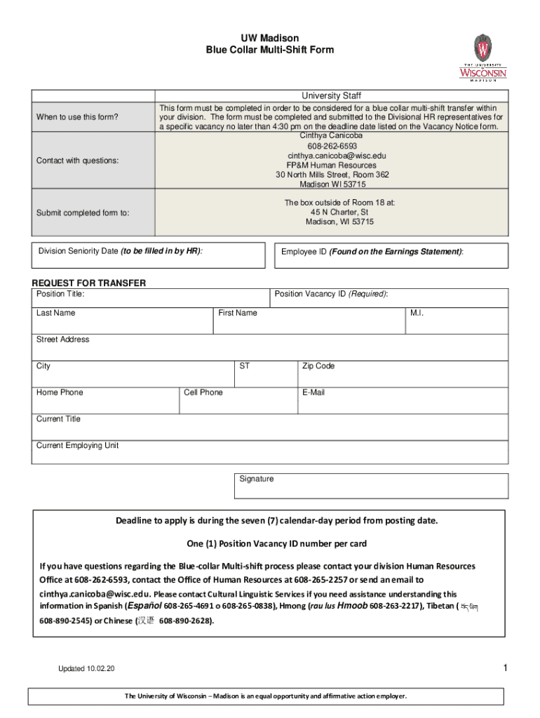 Get the Get the free UW Madison Blue Collar Multi-Shift Form